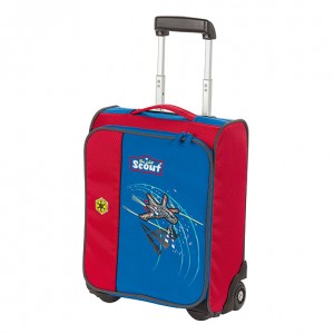 Чемодан на колесах детский Scout. Материал: полиэстер повышенной прочности, не истирается и не рвется. Вместительное внутреннее отделение, ремни для фиксации одежды, дополнительный карман на молнии, удобная выдвижная ручка. Каучуковые колеса.